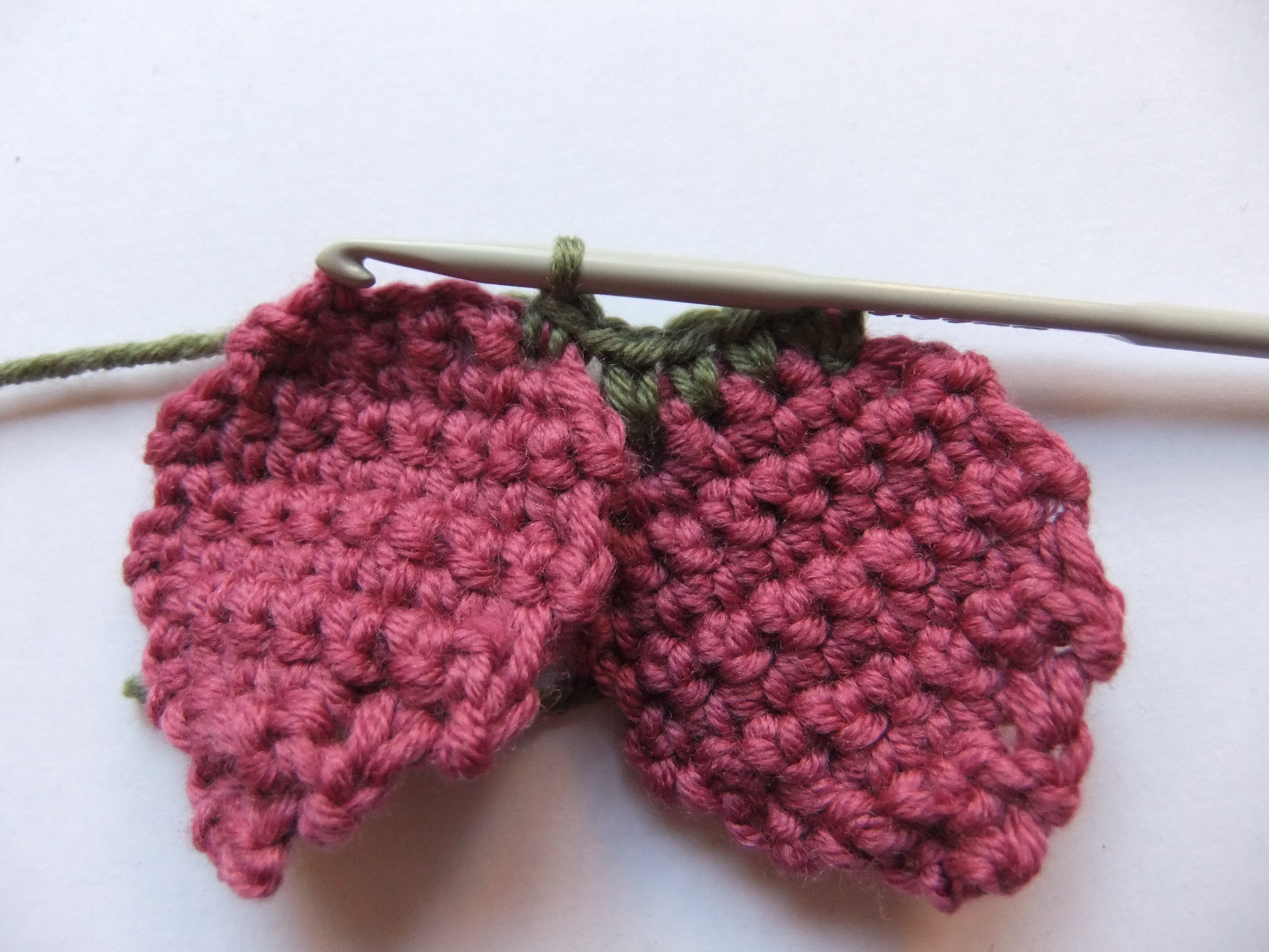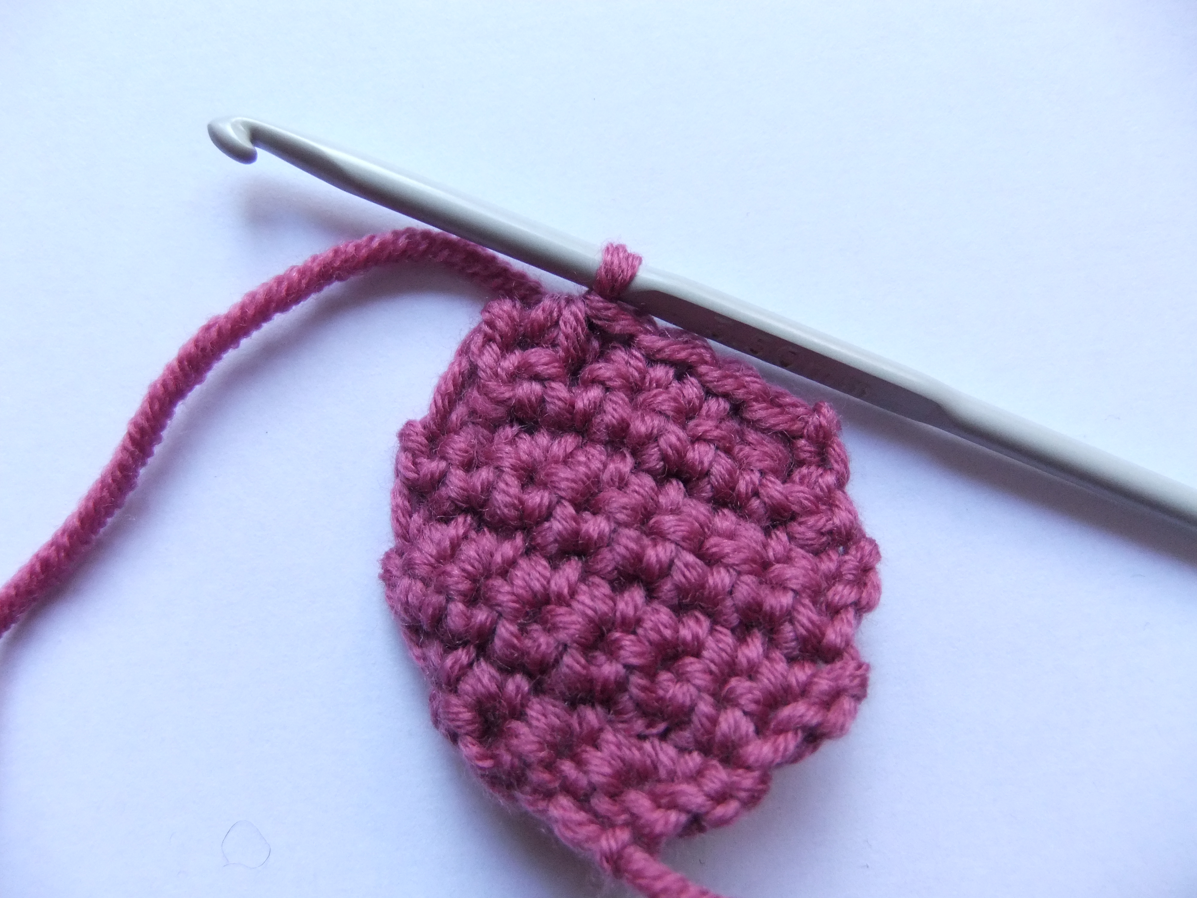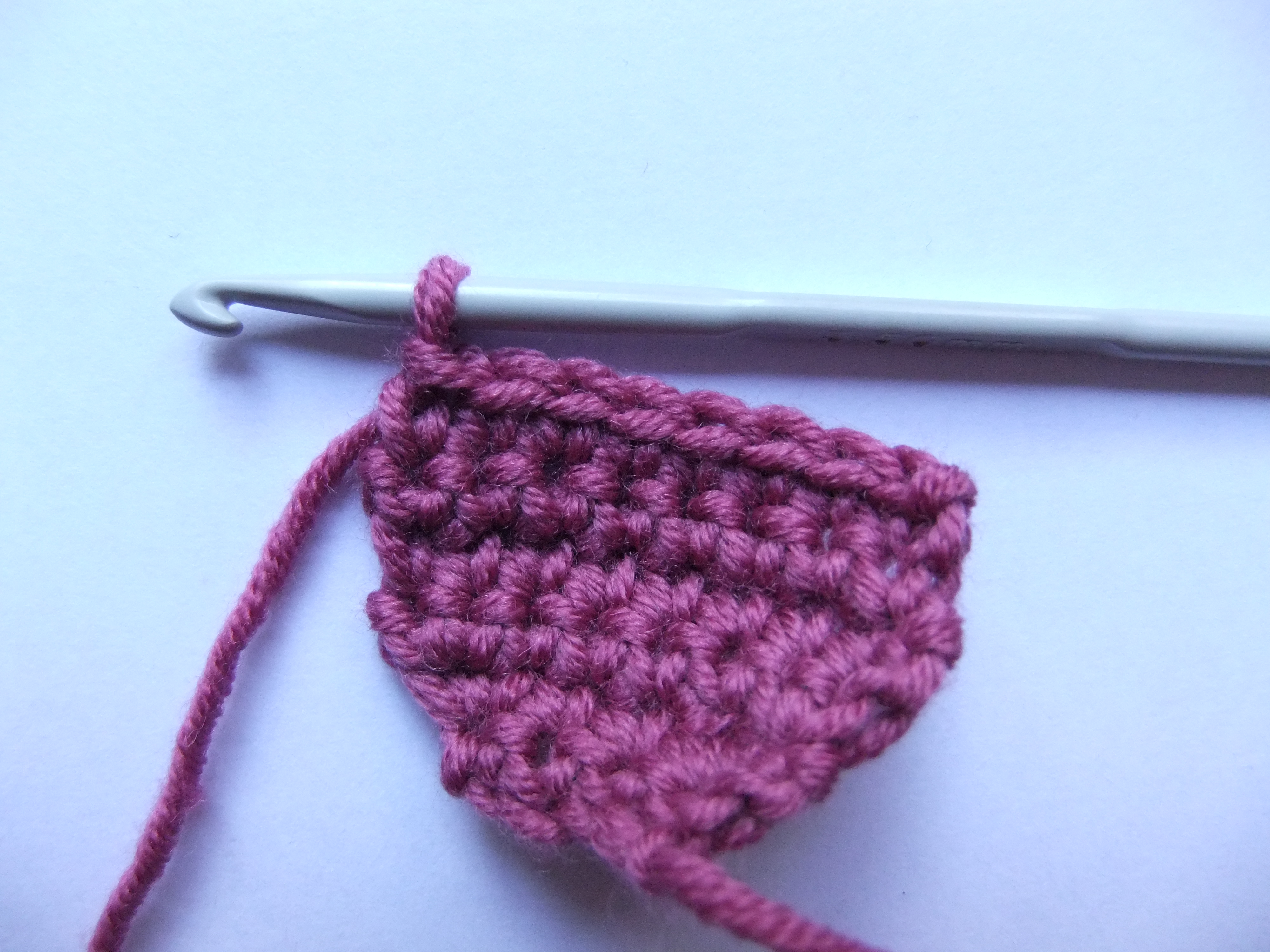 Row nine: 1ch 2dc tog, dc in next dc, dc in next dc, 2dc tog