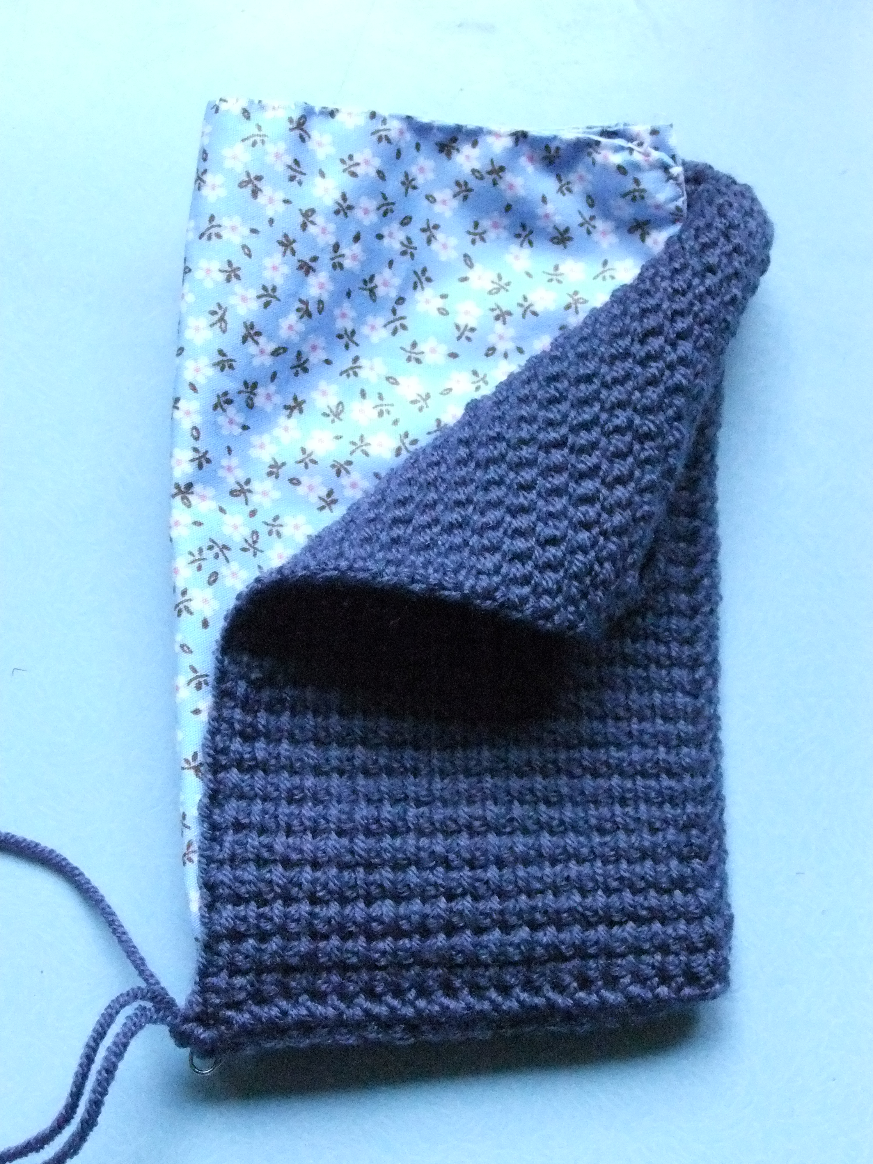 There was a good chance that the crochet stitch would leave an annoying dimpled pattern across the phone screen, so I decided that it needed lining with some ditsy-print fabric…